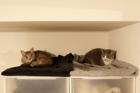 いつも仲の悪いふたりですが寝床の好みは似ているのです。ということで狭いながらも最 ...